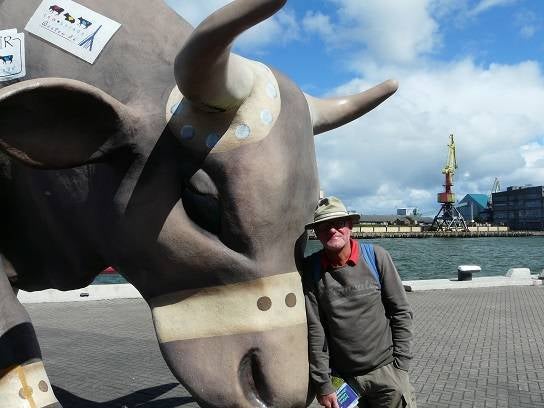 Veel beelden, vooral koeien, en bloemen in Ventspils