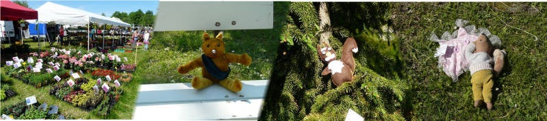 Bloemenfestival in Kuressaare, met knuffels overal in het park.