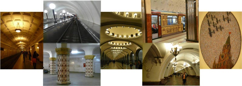 Een paar van de prachtige metrostations van Moskou, met o.a. mooie lampen en mozaïeken.